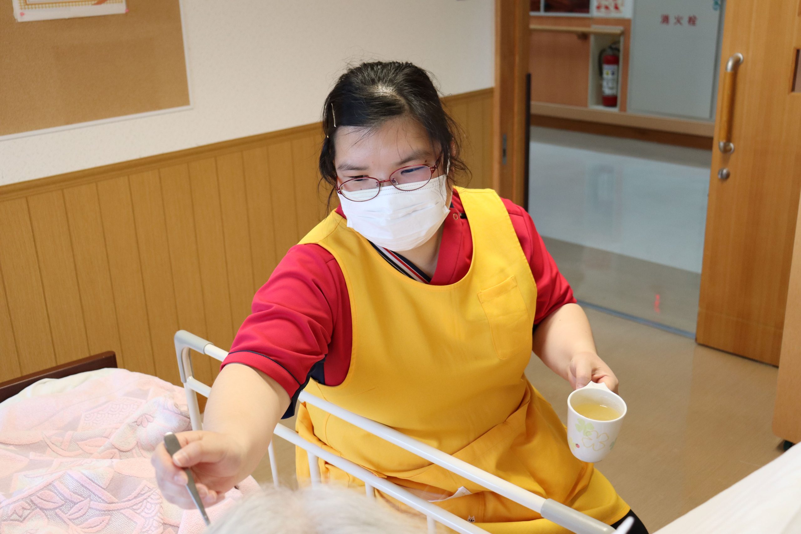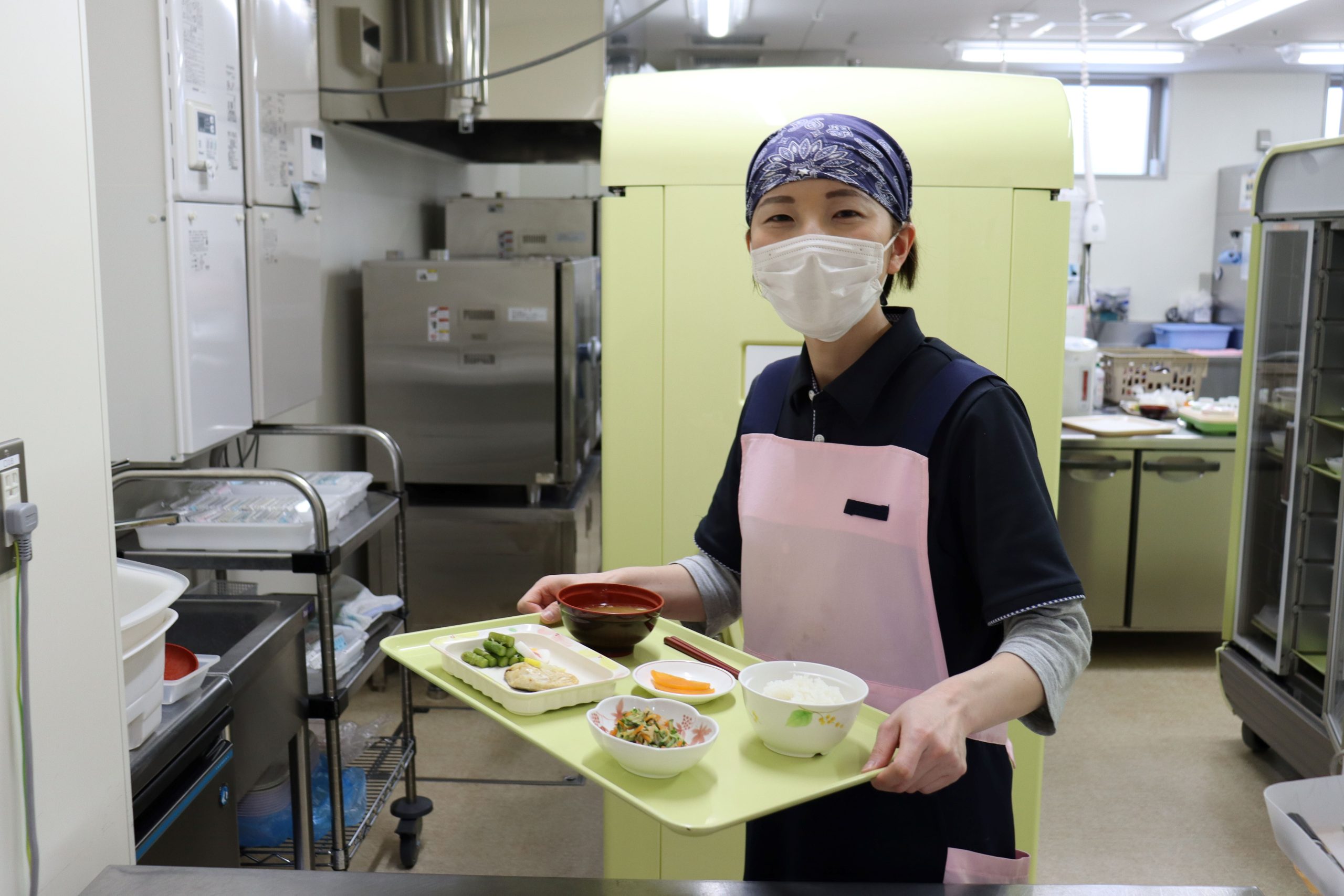 利用者さんに美味しい食事を提供できるように、味や形態に気を付けながら作っています。日々ご指導いただきながら、少しづつできることが増えてきました。外出する機会の少ない利用者さんに喜んでもらえるように、季節感のある食材を取り入れるなど、工夫して調理しています。