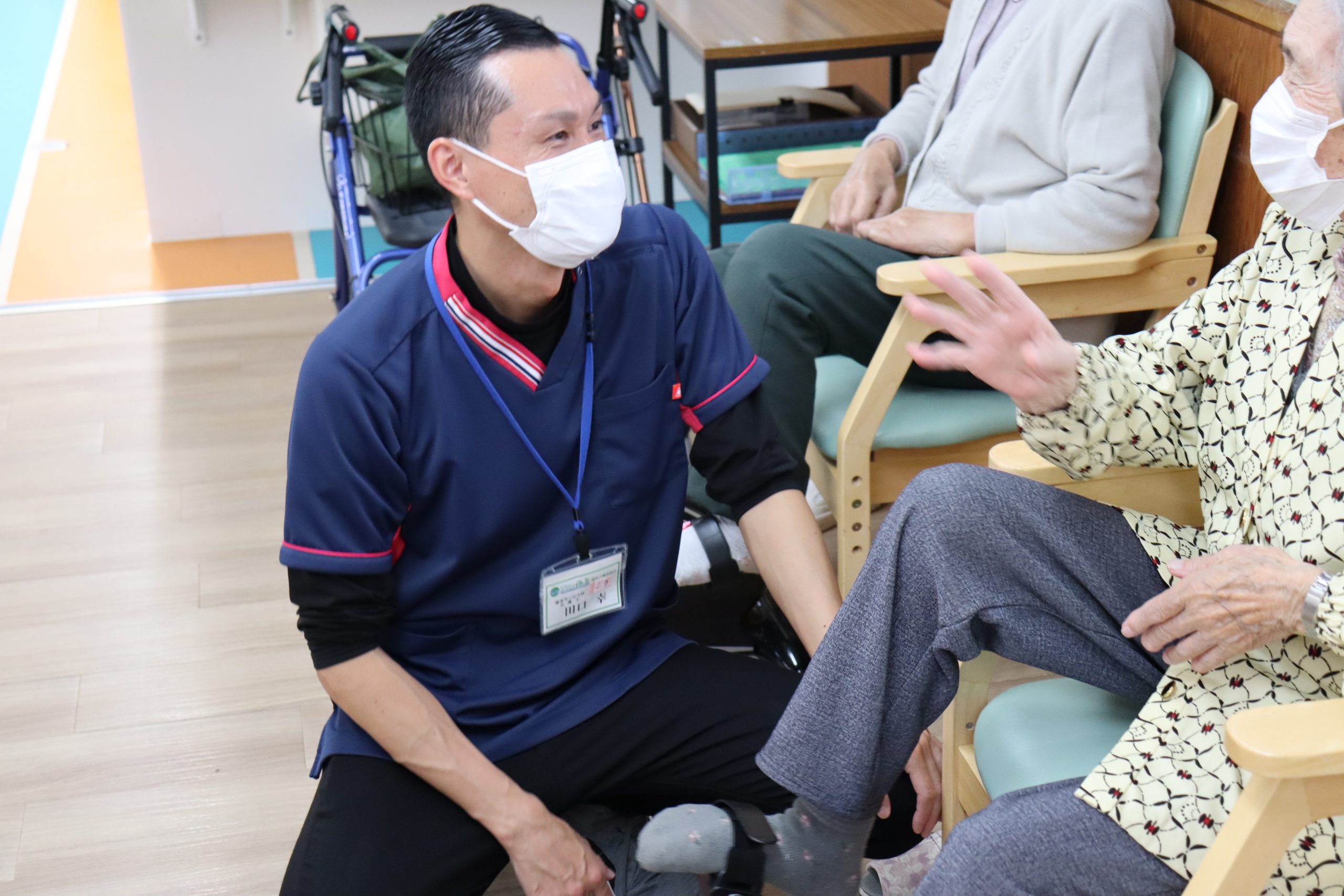 私が仕事をしていてやりがいを感じるときは利用者の方が笑顔になってくれたときです。私たちの職場では職員が意見を出し合って、利用者の方に笑顔になってもらえるように日々頑張っています。