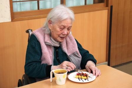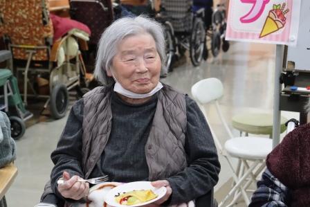 先日施設内にて「クレープ喫茶」を開催し、利用者様に焼きたてのクレープを食べていただきました。