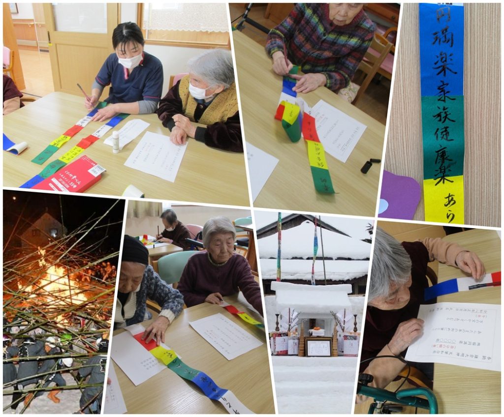 六郷の町中にはカラフルな天筆がはためいていますが、ケアハウスでも天筆に願い事を書いてお部屋の入口に飾りました♪願い事が叶いよい一年になりますように…