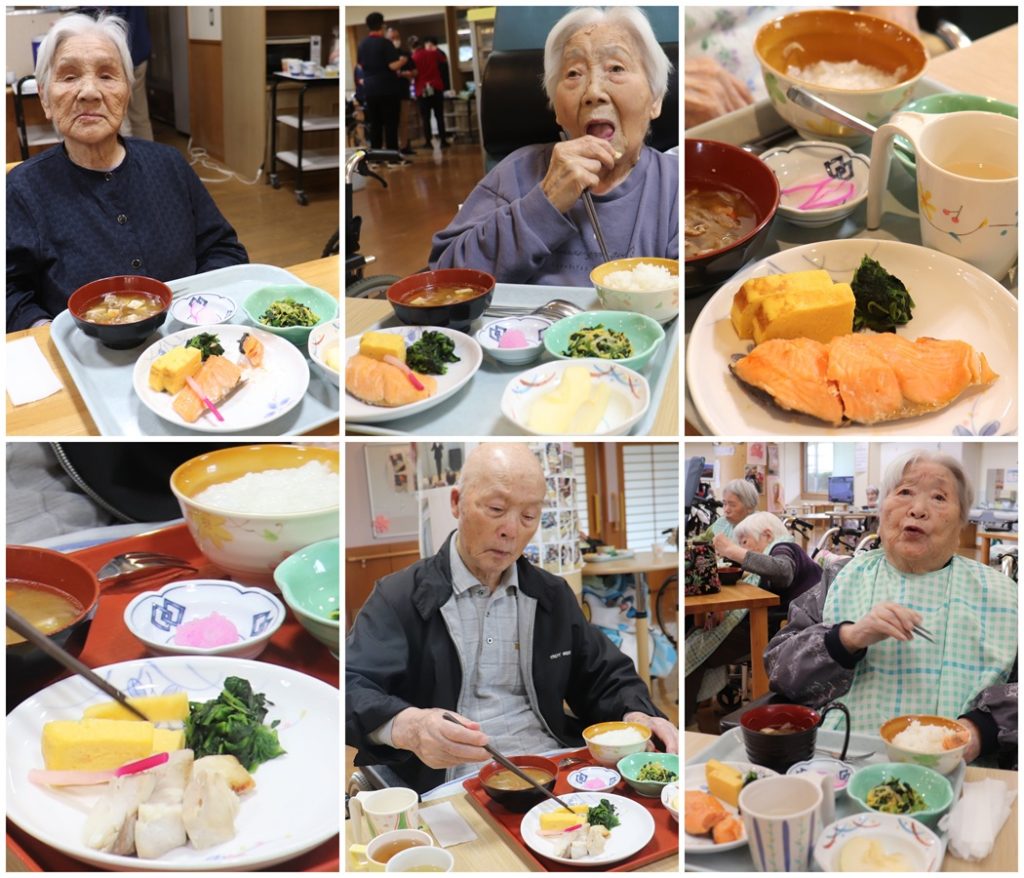 栄養士がお米の味を引き立てる選択食を実施。メインのおかずを「鮭」と「銀ムツ」にして、新米をおいしくいただくことができました。