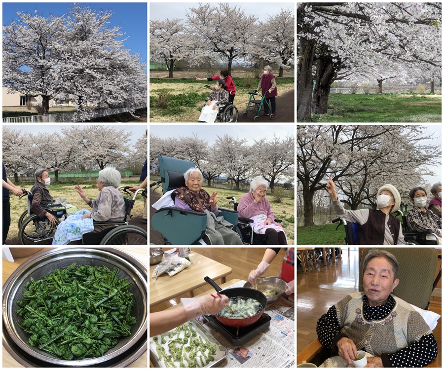 お花見をした後は河川敷のコゴミを採って春の味に舌鼓を打ちました。これもロートピア仙南の春の風物詩となっており、花より団子で大々好評です!